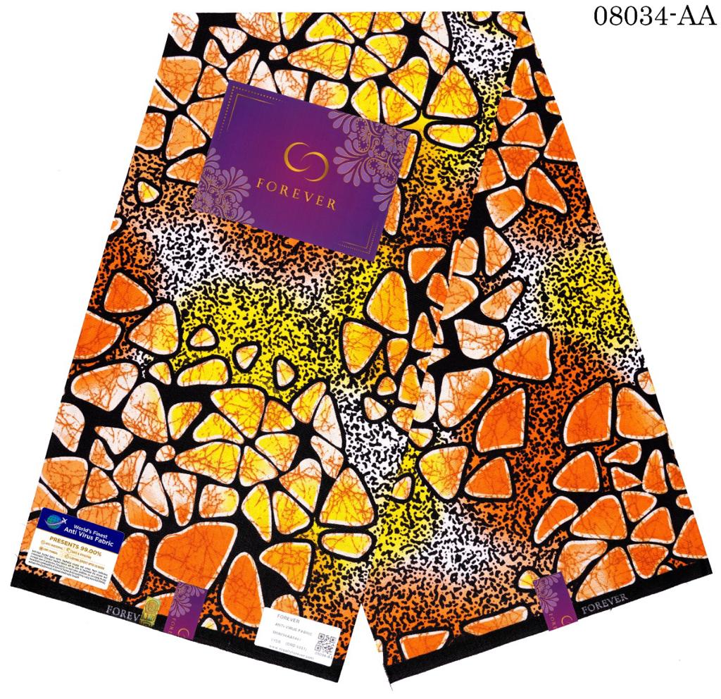 The African Ember Ankara Fabric features an abstract pattern that evokes the rugged surfaces of rocks and the rich, textured layers of desert mud. The dynamic interplay of fiery oranges and golden yellows mirrors the blazing African sun and the warm, dusty environment. This design creates a visual experience reminiscent of sunlit landscapes and the natural splendor of Africa.