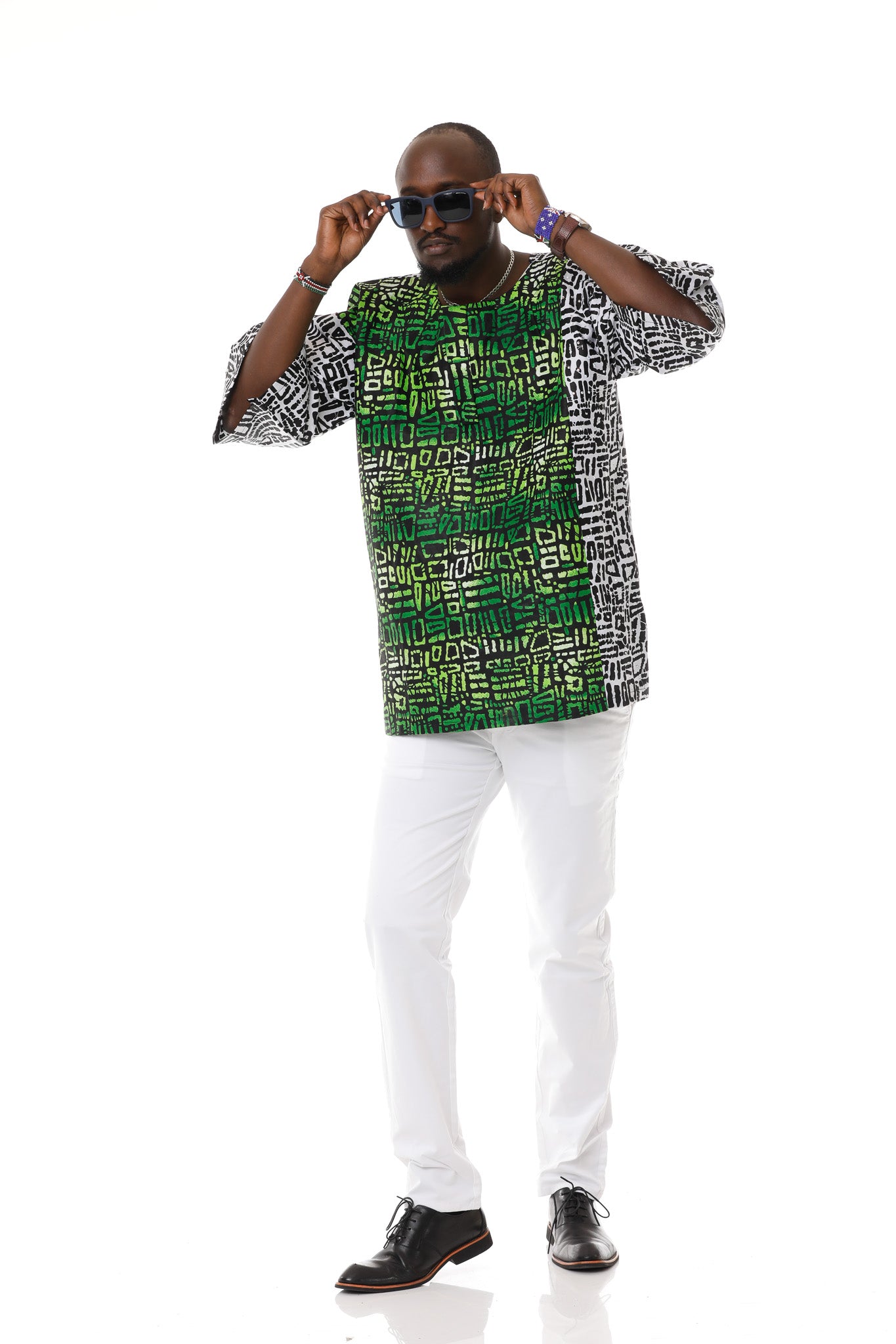 Introducing the African Green and White Ankara Print Crew Neck T-Shirt by Native Style – a vibrant fusion of traditional African artistry with contemporary fashion. This striking garment showcases an intricate green and white Ankara print that pays homage to cultural heritage while making a fearless fashion statement.