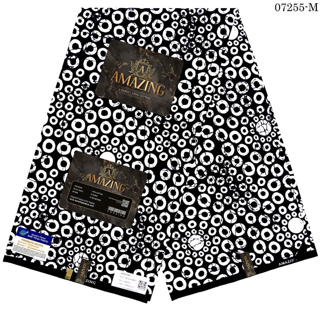 Introducing "Beacons of Unity" Ankara fabric—a celebration of the vibrant spirit and communal harmony of African tribes. This fabric showcases an abstract circular design that symbolizes the radiant light and collective energy these communities bring to the land. The interplay of vivid colors and contrasting tones captures the essence of tribal life, where white beacons of light represent hope, purity, and enlightenment, while the bold black hues ground the design, reflecting the strength and resilience of the earth itself. African landscape, making this fabric a striking tribute to both the natural beauty and the cultural richness of Africa. Ideal for those who seek to embrace and celebrate the depth and vibrancy of African heritage in their wardrobe or home décor.