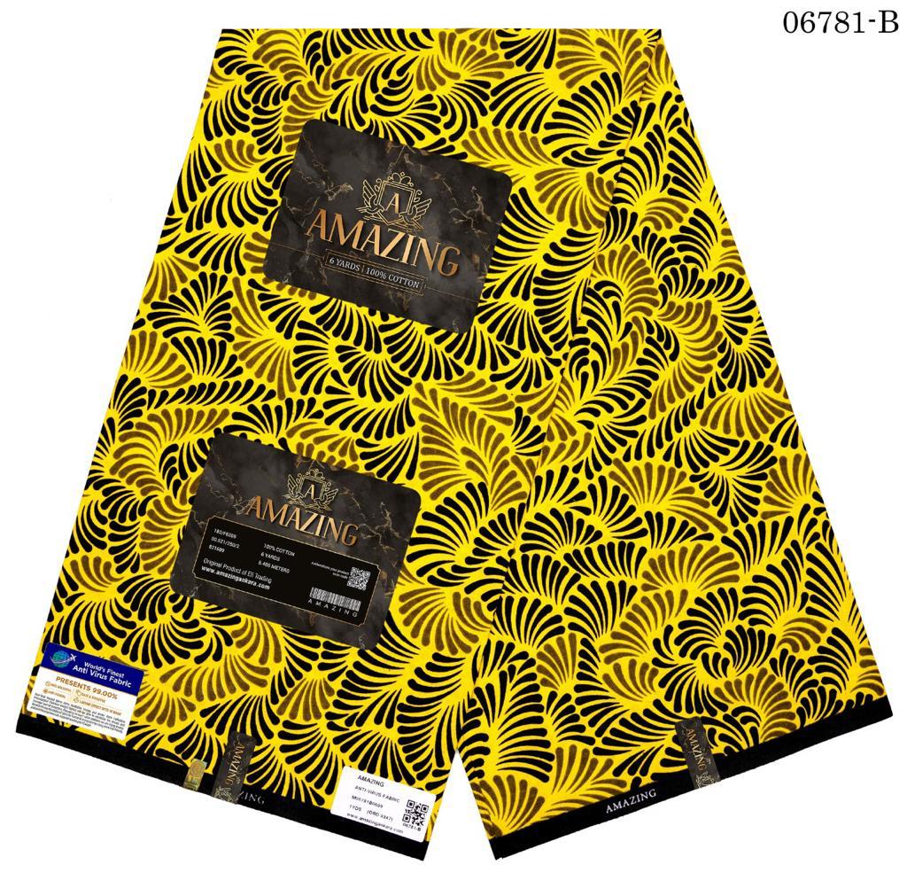 Introducing a breathtaking Ankara print fabric that captures the graceful dance of fern leaves twirling and swirling in the sunlight. The bold and lively patterns depict a symphony of ferns clashing together in the wind, each leaf moving in perfect harmony. The vibrant yellow background reflects the warm embrace of sunlight, illuminating the intricate details of the fern leaves as they meld together, creating a mesmerizing visual effect.